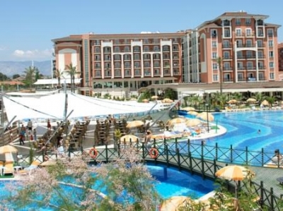 Hotelul dispune de un numar total de 587 camere, din care: 239 camere standard in cladirea principala, 234 camere club standard in alte cladiri de cate trei etaje, 114 camere family. Toate camerele au baie proprie cu cada si uscator de par, aer conditionat, telefon, mini bar, seif, tv satelit, balcon sau balcon frantuzesc. SERVICII: Ultra all inclusive – buffet deschis pentru mic dejun, mic dejun tarziu, pranz, cafea dupa-amiaza, prajituri si ceai, cina, cina tarzie, inghetata la piscine dupa-amiaza, toate bauturile locale alcoolice si nealcoolice, restaurante A la Carte cu rezervare in prealabil. Nu sunt incluse bauturile special de import si bauturile imbuteliate. FACILITATI: Restaurant principal, restaurant A la Carte: turcesc, pescaresc, italienesc, baruri in complexul hotelier, disco club. Serviciile medicale, spalatoria, baby sitting, frizerul si coaforul, telefonul, faxul, internetul si jocurile de calculator, shopping center, serviciul rent a car sunt servicii contra cost. PLAJA: Hotel dispune de plaja privata, de nisip si pietricele cu saltele, umbrele si prosoape de plaja gratuite. SPORT SI DIVERTISMENT: Piscine de exterior si interior pentru adulti si copii, tobogane apa, sala de fitness, baie turceasca, sauna, tenis de masa, gimnastica. Contra cost sunt: sporturile nautice, biliard si bowling, centrul de frumusete, masajul. Programe de divertisment in timpul zilei si seara programe de animatie. Mini club pentru copii de la 04 la 13 ani. | ||||||||||||||||||||||||||