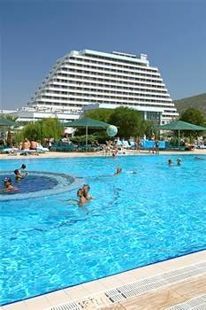 Pozitie Hotelul este situat pe malul marii, la 55 km de aeroportul din Izmir si la 8 km de centrul ora?ului Kusadasi. Hotelul a fost renovat in 2007. Capacitate de cazare 353 camere standard (25mp) si 80 club room (41mp). Camerele Dispun de: baie, foehn, telefon, televizor, aer conditionat, minibar, seif si room service (contra cost), balcon. Facilitati si servicii Restaurant principal, 2 restaurante a la carte, 3 baruri, coafor, centru comercial, spalatorie, cabinet medical, parcare, rent a car, 6 Sali de conferinta (700 pers). | ||||||||||||||||||||||||||