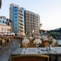 Pozitie Hotelul este situat pe malul marii, la 75 km de Aeroportul Izmir. Capacitate de cazare 116 camere standard, 6 connected rooms ,7 family room, Camerele Dispun de: baie, telefon, jacuzzi, , tv satelit ,aer conditionat, minibar, seif electronic, uscator de par, internet . Facilitati si servicii Restaurant a la carte, snack bar, 3 baruri, restaurant cu specific turcesc si meditenaneean, centru medical, internet, magazin, curatatorie, spalatorie, parcare | ||||||||||||||||||||||||||