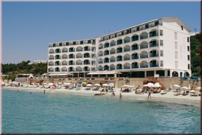 Localizare: in Halkidiki, pe bratul Kassandra, pe o minunata plaja cu nisip fin din Kallithea. Centrul localitatii Kallithea se afla la 200 m si aeroportul din Salonic la 75 km. Camere: frigider, aer conditionat, TV, telefon, baie (cada cu dus, WC, uscator de par). Capacitate maxima/camera standard: 3 adulti Facilitati: restaurant, baruri, piscina, bazin pentru copii, jacuzzi, sala de conferinte, masaj, sauna Masa: mic dejun si cina bufet Observatii: construit pe ruinele unei foste manastiri rusesti, hotelul imbina luxul si calitatea ireprosabila a serviciilor, cu peisajul minunat al peninsulei. Plaja hotelului a primit distinctia Steagul Albastru (Blue Flag). |