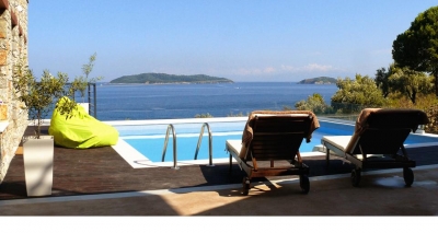 Localizare: Golden King, format din 6 vile, este situat pe plaja "Mikros Vasilias", la doar 2,5 km de orasul Skiathos si la 20 de metri de mare. Complexul este situat intre alte 2 plaje, Megali Ammos si Megalos Vassilias, unde turistii se pot bucura de activitati si sporturi nautice (schi nautic, parasailling, banana). Statia de autobuz se afla la 50 metri distanta de hotel. In apropierea complexului se afla taverna traditionala Poseidon, renumita in insula pentru savoarea preparatelor sale (fructe de mare, peste). Facilitati complex: proiectul fiecarui apartament este astfel conceput incat sa confere maximum de confort pe perioada sederii. Dormitoare spatioase, bai de lux, terase mari cu o uimitoare vedere spre mare, vor face zilele petrecute aici de neuitat. Fiecare locuinta are propria piscina pentru nesfarsite ore de relaxare. Facilitati camere: dormitorul principal, deosebit de spatios, cu o suprafata de 25 mp, dispune de o cada cu jacuzzi si este amenajat special pentru a petrece un sejur intr-o atmosfera romantica. Celelalte doua dormitoare de 15 mp, sunt concepute si decorate in acelasi stil. Ambele au sistem de aer conditionat iar unul dintre ele are acces direct la gradina. Camera de zi ce se intinde pe o suprafata de 50 mp, este o zona „open space” cu bucatarie si zona de servire a mesei. Din camera de zi va puteti bucura de o priveliste spectaculoasa catre mare si piscina privata a vilei. Fiecare apartament dispune si de o terasa mare (70 mp). | ||||||||||||||||||||||||||