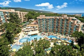 Amplasare: Hotelul se afla in statiunea Nisipurile de Aur la 150 m distanta de plaja Camere: baie, A/C, TV-sat, telefon, balcon. Facilitati: restaurant, lobby bar, seif, internet, terasa, pool bar, program de animatie, muzica live, miniclub, loc de joaca pentru copii, piscina, piscina pentru copii,sauna, baie de aburi, fitness, tenis de masa, darts, biliard, teren de sport.