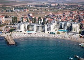 Amplasare: hotelul este situat in partea de sud a statiunii Pomorie, pe plaja. Camere: Complexul este format dintr-un hotel si o cladire de apartamente. Hotelul dispune de 36 camere duble si 12 apartamente, iar in cladirea de apartamente sunt 80 studiouri si 140 apartamente dotate cu bucatarie si living. Majoritatea camerelor si apartamentelor au terasa cu vedere la mare sau la parc. Facilitati: Restaurant principal, restaurant cu specific pescaresc, lobby, pool bar, beach bar, piscina exterioara, SPA, fitness, internet in spatiile comune, centru comercial, parcare.