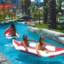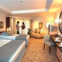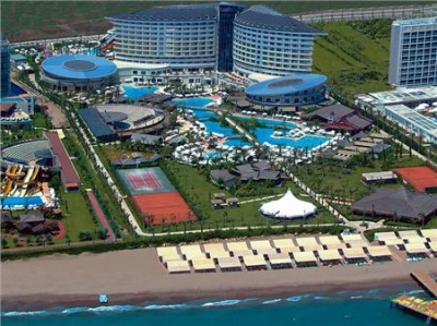 Hotelul dispune de un numar total de 467 camere; 405 camere standard superior ( 36 m2; 2+1 pax), 20 camere deluxe suit ( 70 – 80 m2, max. 4 pax), 40 camere family duplex ( 48 m2, max.4 pax) si 2 Royal King Suit. Toate camerele dispun de balcon, vedere la mare sau vedere la park, baie privata cu cada sau cabina de dus, uscator de par, aer conditionat, telefon direct, mocheta, mini bar ( bauturiracoritoare si bere, fara plata, in fiecare zi), seif, TV satelit. SERVICII: Ultra All Inclusive – bufet deschis la micul dejun, bufet tarziu, pranz, buffet dietetic, bufet pentru copii, gustari la plaja, cina, gustari tarzii. Toate bauturile racoritoarele si alcoolice locale si cele de import, ceai, cafea, restaurant a’la carte cu rezervare in avans o data pe saptamana, inghetata. Nu sunt incluse in conceptul ultra all inclusive: room service, sucurile fresh din fructe si legume, sampania de import, bauturile de lux din import – whisky, cognac etc. , toate bauturile imbuteliate si vinurile de import, restaurant a’la carte – a doua intrare in aceeasi saptamana este contra cost. FACILITATI: Restaurant principal – bufet deschis, restaurant a’la carte – specific turcesc, bucatarie italiana, specific thailandez si bucatarie pescareasca, patiserie, baruri deschise 24 de ore. Contra cost: doctor, baby sitting, spalatorie, uscatorie, centru de infrumusetare, rent a car, telefon, fax, internet cafe, centru comercial, coafor. PLAJA: Plaja privata de nisip, umbrele de soare, sezlonguri, prosoape de plaja – fara cost. SPORT si DIVERTISMENT: Piscina exterioara si interioara pentru adulti si pentru copii, un mare Aqua park ( 9 tobogane), parc de distractii ( merry go round, carusel). Fara plata: centru fitness, baie turceasca, sauna, jacuzzi, baie de aburi, teren de tenis, volei de plaja, tenis de masa. Contra cost: teren de tenis cu nocturna, curs de tenis, masaj, bowling, biliard, toate sporturile nautice, scoala de scufunduri, centru spa si de infrumusetare. Programe de divertisment si competitii in fiecare zi, show-uri seara, mini cluburi pentru tineri | ||||||||||||||||||||||||||