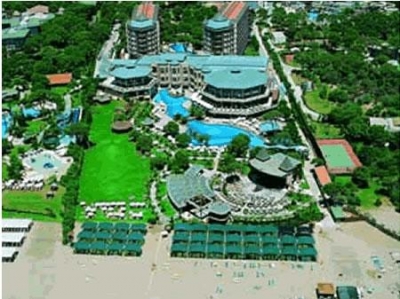 Hotelul dispune de un numar total de 338 de camere. Sunt 299 de camere in cladirea principala si 39 de apartamente in gradina. 218 camere standard (35 mp, maxim 2+2 persoane, un dormitor si o baie); 39 de apartamente familiale in gradina (55 mp, maxim 4 persoane, un dormitor, un living si o baie); 40 duplex family (70mp, maxim 4 persoane, un dormitor, un living si doua bai); 22 Junior Suit (70mp, maxim 4 persoane, un dormitor, un living, o baie cu jacuzzi); 11 Excellent Suit (110 mp, maxim 5 persoane, un dormitor, un living si o baie cu jacuzzi); 4 Duplex Suit (140 mp, maxim6 persoane, doua dormitoare, doua livinguri, doua bai cu jacuzzi). In toate camerele sunt: aer conditionat (functioneaza in functie de conditiile meteo), telefon direct, mini bar (cu bauturi racoritoare, apa si bere, reumplut in fiecare zi), seif, halat si papuci la sosire, TV satelit, canale de muzica si balcon. Servicii: High class all inclusive – mancare si bautura – bautura de bun venit, mic dejun, mic dejun tarziu, pranz, cina, in camerele familiale ceai si cafea, spectacole culinare, bufet dietetic, bufet la miezul noptii, restaurante A’ la Carte, toate bauturile alcoolice si non alcoolice locale si de import 24 de ore din 24 (in Discoteca de la 23:00 la 02:00), inghetata la piscina la anumite ore, bar la piscina, bar cu gustari, room service intre 24:00 si 07:00. Nu sunt incluse: bauturile premium, inghetata cu plata din toate barurile, sampanie frantuzeasca. Facilitati: Restaurantul principal cu bufet, restaurante a la carte: Olive Garden (specific mediteranean), Mexican (specific mexican), Chinese (specific oriental), Turkish (specific turcesc), baruri in complexul hotelier. Contra cost: doctor, baby sitting, spalatorie si uscatorie, telefon, fax, internet cafe si jocuri pe calculator, coafor, shopping center, rent a car. Plaja: Hotelul are plaja proprie de nisip, cu sezlonguri, umbrelute si prosoape gratuite. Sport si divertisment: Piscine de interior si exterior pentru adulti si copii, tobogane, baie turceasca, sauna, fitness, terenuri de tenis, nocturna, echipament, baschet, volei, volei pe plaja, tenis de masa, biliard si sporturile nautice sunt gratuite. Contra cost sunt: masajul, centrul Spa si Wellness, toate sporturile nautice cu motor. Programe de divertisment in timpul zilei, concursuri la piscina si pe plaja, seara spectacole, muzica live de trei ori pe saptamana. Mini club pentru copiii intre 4 si 12 ani si Junior Club pentru cei intre 13 si 16 ani. | ||||||||||||||||||||||||||