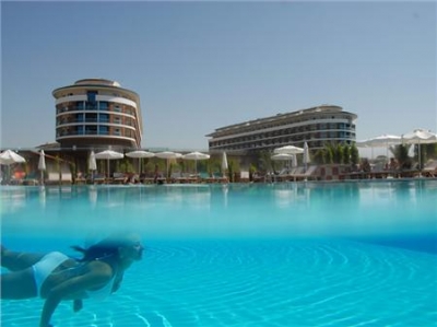 CAZARE: Hotelul dispune de un numar total de 600 de camere, in prima cladire principala, in a doua cladire principala si in bungalouri. In prima cladire principala sunt: 256 camere standard (32mp, 2+1 persoane); 30 camere family (39mp, doua dormitoare si o baie, maxim 5 persoane); 4 Junior Suits (56mp, un living si un dormitor, maxim 3 persoane); 2 King Suits (125mp, doua dormitoare si un living, maxim 6 persoane). Toate camerele din prima cladire principala au baie proprie cu cada, uscator de par, aer conditionat split functional 24 de ore, telefon direct, mini bar, seif, mocheta (in suite parchet), TV satelit si canale de muzica, balcon si vedere la mare. In a doua cladire principala sunt 94 camere standard (32mp, 2+1 persoane), 12 camere family (39mp, doua dormitoare, o baie, maxim 5 persoane).Toate camerele din aceasta cladire au aceleasi dotari ca si in prima cladire, doar ca sunt cu vedere la uscat. In bungalouri sunt: 12 camere standard (32mp, 2+1 persoane), 88 camere family (39mp, doua dormitoare, o baie, maxim 5 persoane), 102 Junior Family Rooms *34 mp, un dormitor, 3 persoane). Toate camerele din bungalouri au baie proprie cu dus si uscator de par, aer conditionat split functional 24 de ore, telefon direct, mini bar, seif, parchet din ceramica, TV satelit si canale de muzica, balcon, toate camerele au vedere la gradina. SERVICII: Ultra all inclusive – bufet la mic dejun, mic dejun tarziu, gustari la Beach Club, cina, gustari tarzii, patiserie, inghetata, prajituri, cafea si ceai dupa amiaza, toate bauturile locale si unele de import alcoolice si nealcoolice, restaurante A’ la Carte cu rezervare in prealabil o data pe sejur, mini bar in camere reumplut zilnic cu bauturi racoritoare si apa, sandvisuri in lobby bar intre 01:00 si 07:00. Sunt incluse in concept urmatoarele bauturi: Russian Standard Votka, Tequila Camino Real, Absolut Votka, Bacardi Superior, Ballantine’s, Beefeater, Mariachi, Chivas Regal, Cinzano, Dewar’s, Eristoff, Havana Club, Jack Daniels, Jim Beam, Malibu, Martini Bianco.Nu sunt incluse in conceptul ultra all inclusive: bauturile de import de lux, sampania, toate vinurile imbuteliate, sucul natural de fructe, toate bauturile in Planet Bar, narghilea. FACILITATI: Restaurant principal cu bufet, restaurante A’ la Carte: turcesc, italienesc, chinezesc, japonez (taxa de rezervare), mexican, pescaresc, frantuzesc, grecesc, diferite baruri. Contra cost sunt: doctor, baby sitting, coafor, spalatorie si uscatorie, telefon, fax, internet, centru comercial, rent a car, internet café. PLAJA: Hotelul are plaja proprie de nisip, cu sezlonguri, umbrelute si prosoape gratuite. SPORT SI DIVERTISMENT: Piscine de interior si exterior pentru adulti si copii, tobogane, centru fitness, baie turceasca, sauna, terenuri de tenis, volei pe plaja, mini golf, tenis de masa, sporturi nautice nemotorizate. Contra cost sunt: masajul, Spa si Wellness, parc de distractii (cinci bilete gratuite pentru copii), sporturi nautice motorizate, centru de scufundari. Se organizeaza programe de divertisment in timpul zilei, concursuri la piscina si pe plaja, mini cinema, spectacole seara, mini club pentru copiii intre 4 si 12 ani si club pentru adolescentii intre 13 si 16 ani. | ||||||||||||||||||||||||||