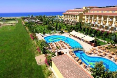 Hotelul dispune de un numar total de 321 camere, 216 camere standard ( 28m2, 2+1 pers), situate atat in cladirea hotelului cat si in cea a clubului, 101 camere family ( 56 m2, 2 camere cu usa comunicanta, max 4 pers); 8 camere junior suit ( 52-65 m2, 2 dormitoare, 1 living room, max 4 pers); 3 camere pentru persoanele cu dezabilitati. Toate camerele sunt dotate cu cada, uscator de par, aer conditionat, telefon direct, mini bar ( bauturi racoritoare, apa, la sosire), seif ( contra cost), TV satelit, canale de muzica, balcon, mocheta in camere. SERVICII: Ultra All Inclusive – mic dejun, buffet deschis, mic dejun tarziu, pranz, gustari , cafea, dupa amiaza, cina, gustari tarzii, bauturi locale standard si din import, alcoolice si nealcoolice, inghetata ( 15.00-16.00), restaurante A’la Carte cu rezervare in avans, fara cost. Nu sunt incluse in concept: bauturile de lux din import, mini bar, room service, sucuri fresh de fructe, bauturi imbuteliate, mancarea si bautura dupa ora 24.00. FACILITATI: Restaurant principal – buffet deschis, restaurant A’la Carte – Flamingo – bucatarie italiana, Sofra – bucatarie turceasca, baruri. Contra Cost: doctor, baby sitting, spalatorie, coafor, centru commercial, rent a car, telefon, fax, internet. PLAJA: Hotelul dispune de plaja private din nisip, umbrele de soare, prosoape de plaja, fara plata. SPORT SI DIVERTISMENT: Piscina exterioara si interioara pentru adulti si copii, tobogane, centru fitness, baie turceasca, sauna, tenis, volei, volei pe plaja, mini golf, mini fotbal, tenis de masa. Contra cost: centru de infrumusetare, masaj, noscturna pentru terenurile de tenis, sporturi nautice. Programe de divertisment in timpul zilei si diverse show-uri seara. Mini club pentru copii cu varsta cuprinsa intre 04-15 ani. | ||||||||||||||||||||||||||