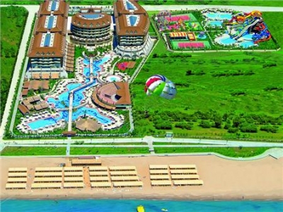 Hotelul dispune de un numar total de 564 de camere. Sunt 396 de camere standard confort (40 mp, maxim 2+1 persoane), 111 camere duplex family (60 mp, doua dormitoare, doua bai si un balcon), 35 camere family (60 mp, doua dormitoare, o baie si un balcon), 14 Junior Suits (70 mp, doua dormitoare, doua bai cu jacuzzi, balcon), 3 King Suits (100 mp, trei camere, doua bai, balcon). Camerele au vedere la mare, vedere partiala la mare, si vedere la uscat, au baie proprie cu dus si cada, uscator de par, aer conditionat central, telefon direct, mini bar (reumplut zilnic cu bauturi racoritoare si bere), seif, TV LCD satelit, balcon. SERVICII: Ultra all inclusive – bufet la mic dejun, mic dejun tarziu, gustari de dimineata, pranz, dupa amiaza prajituri, torturi, gustari, cina, gustari tarzii, restaurante A’ la Carte cu rezervare in prealabil, toate bauturile locale si de import standard alcoolice si nonalcoolice, inghetata, mini bar in camere. Nu sunt incluse: bauturile de import de lux, toate bauturile locale si de import imbuteliate, sucurile naturale de fructe si legume, sampanie de import. FACILITATI: Restaurant principal cu bufet, restaurante A’ la Carte: Dulcinea (italienesc), Firuze (turcesc), Dorado (fructe de mare) si Zen (specific oriental); baruri in complexul hotelier. Contra cost sunt: serviciile medicale, baby sitting, spalatorie si uscatorie, centrul comercial, telefonul, faxul, internetul, jocurile pe calculator si rent a car. PLAJA: Hotelul are plaja proprie de nisip, cu sezlonguri, umbrelute si prosoape gratuite. SPORT SI DIVERTISMENT: Piscine de interior si exterior pentru adulti si copii, tobogane, centru fitness, baie turceasca, sauna, terenuri de tenis, volei pe plaja, baschet, tenis de masa, toate sunt gratuite. Contra cost sunt: masajul, centrul de infrumusetare, nocturna, bowlingul, biliardul, toate sporturile nautice. In timpul zilei se organizeaza porograme de divertisment, concursuri, spectacole si mini club. | ||||||||||||||||||||||||||
