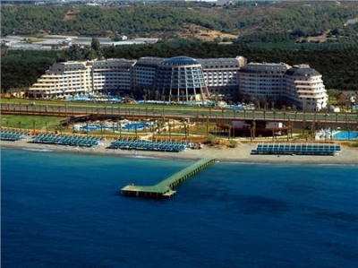 Hotelul dispune de un numar total 653 camere, din care 458 camere standard (2+1 persoane), 90 camere family duplex (max.4 persoane, 2 camere separate cu usa de legatura intre etaje, 1 baie), 30 camere family duplex suits (max.4 persoane, 2 camere separate, cu usa, pe 2 etaje si 2 bai), 3 camere Junior suits (max.3 persoane, 2 camere cu usa de legatura, 2 bai si 2 balcoane), 11 Jacuzzi suits (2 camere separate, 1 baie cu cada, 1 baie cu Jacuzzi, sauna), 48 vile: 2 camere cu usa de legatura, acces direct din camera la piscina, sauna privata. Toate camerele au baie proprie cu cada, dus, uscator de par, sistem central de aer conditionat, telefon direct, mini bar, seif, TV satelit si canale de muzica , balcon. Servicii: Ultra all inclusive - bufet deschis la micul dejun, mic dejun tarziu, pranz, cina, gustari in timpul zilei si seara, mini bar in camera, reumplut zilnic cu bauturi racoritoare si apa, toate bauturile locale si de import (standard) alcoolice si non alcoolice, restaurante A`la Carte, cu rezervare in prealabil si o data pe sejur. Nu sunt incluse in conceptul ultra all inclusive: bauturile de import de lux, toate bauturile imbuteliate, sucurile naturale de fructe, room service, restaurantul A`la Carte Pupa Pruva. Facilitati: Restaurant principal- Hayat cu bufet deschis, snack bar pe plaja, cafea si Cake Cake house, restaurante A`la Carte: Hunkar (bucatarie turceasca), Bon Apetito (cu specific italienesc), Dragon (cu specific chinezesc), Orfoz (cu specific mediteraneean), baruri in cadrul complexului hotelier. Cu plata sunt: serviciile medicale, baby sitting, telefon, fax, internet si jocuri la computer, spalatorie si curatatorie, centru comercial, serviciul rent a car. Plaja: Plaja este privata, de nisip cu pietricele, cu umbrelute, sezlonguri si prosoape gratuite. Sport si divertisment: Piscine exterioare si interioare pentru adulti si copii, Aqua Park, centru fitness, baie turceasca, sauna, terenurile de tenis, baschet, volei, volei pe plaja, tenis de masa, gimnastica. Masajul, sporturile nautice, bowlingul, mancare speciala dietetica, centrul Wellness si SPA sunt contra cost. Se organizeaza programe de divertisment in timpul zilei, competitii la piscina si pe plaja, spectacole seara, mini club pentru copii cu programe speciale. | ||||||||||||||||||||||||||