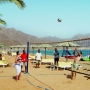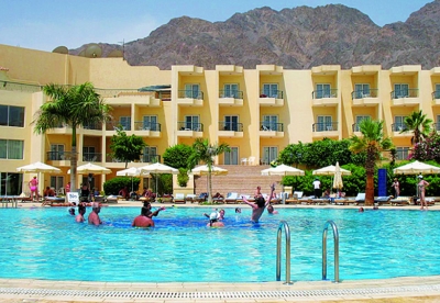 Hotelul alcătuit dintr-o clădire principală şi trei clădiri anexe se situează direct pe malul mării. Distanța fată de plajă 100 m aeroport Taba 60 km aeroport Sharm El Sheikh 195 km magazine la hotel Camere standard cu 2 paturi pat suplimentar: 1 (a 3-a pers.) pat suplimentar: 2 (2 copii) baie proprie (duș, uscător de păr, WC) aer condiționat central telefon, TV seif minibar, alimentarea: contra cost balcon sau terasă Facilităţi recepție 5 restaurante 4 baruri asistență medicală schimb valutar magazine spălătorie curățătorie sală de conferințe acces internet contra cost 2 piscine (şezlonguri, umbrele şi saltele gratuite) Facilităţi pentru copii 2 bazine pentru copii teren de joacă miniclub Plajă cu nisip şezlonguri, umbrele, saltele şi prosoape gratuite Activități sportive și distractive gratuite sală de fitness aerobic, aquagym teren de tenis, volei pe plajă baschet, darts Activități sportive și distractive contra cost saună, jacuzi, masaj baie cu aburi biliard scufundări sporturi nautice Regim de masă ALL INCLUSIVE: mic dejun, prânz şi cină tip bufet. În cursul zilei gustări uşoare, băuturi alcoolice şi nealcoolice locale nelimitate între orele: 11:00 – 23:00. Serviciile all inclusive diferă de la un hotel la altul. | ||||||||||||||||||||||||||