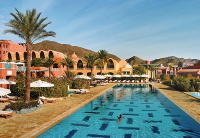 Hotelul de 5* se situează pe partea nordică a golfului Aqaba direct pe malul mării pe riviera Taba în complexul de hoteluri de lux Taba Heights. Distanța fată de plajă 120 m aeroport Taba 35 km aeroport Sharm El Sheikh 225 km magazine la hotel Camere standard cu 2 paturi pat suplimentar: 1 (a 3-a pers.) pat suplimentar: 2 (2 copii) baie proprie (cadă sau duş, uscător de păr, WC) aer condiţionat individual telefon TV satelit seif, minibar balcon sau terasă Alte tipuri de camere sea front lagoon contra supliment Facilităţi recepţie restaurant principal baruri sală de conferinţe acces internet magazin de suveniruri 3 piscine (şezlonguri şi umbrele gratuite) Facilităţi pentru copii bazin pentru copii miniclub Plajă cu nisip şi pietricele (se recomandă papuci pentru apă) şezlonguri şi umbrele gratuite bar pe plajă Activități sportive și distractive gratuite programe de animație programe de seară teren de tenis, iluminare contra cost fitness saună Activități sportive și distractive contra cost masaj Regim de masă PENSIUNE COMPLETĂ: mic dejun, prânz şi cină tip bufet. | ||||||||||||||||||||||||||