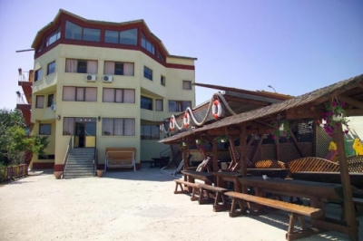 In curtea hotelului se afla terasa, unde turistii pot pregati diverse preparate, la gratarele puse gratuit la dispozitie.