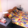 2 camere comunicante, una cu 2 locuri si una cu 3 locuri, cu usa intre ele, fiecare camera cu TV si baie proprie. Camera cu 2 locuri are aer conditionat si frigider.