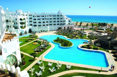 Yasmine Hammamet , TUNISIA Distanța fată de plajă (desparțit de un drum) 100 m aeroport Tunis 45 km centrul orașului Hammamet 8 km magazine 500 m Camere standard cu 2 paturi pat suplimentar: 1(a 3-a pers.) pat suplimentar: 2(2 copii) baie proprie (cadă sau duș, uscător de păr, WC) aer condiționat în sezon telefon, TV satelit minibar: alimentarea contra cost seif: contra cost balcon sau terasă Facilităţi recepție restaurant principal restaurant a la carte 4 baruri cafenea maură centru de thalassoterapie magazin de suveniruri săli de conferințe piscină (șezlonguri și umbrele gratuite) piscină acoperită și încălzită Facilităţi pentru copii bazin pentru copii teren de joacă Plajă cu nisip șezlonguri și umbrele gratuite saltele contra cost bar pe plajă sporturi nautice contra cost Activități sportive și distractive gratuite aerobic, teren de tenis volei pe plajă Activități sportive și distractive contra cost sporturi nautice patinoar în apropiere echitație în apropiere teren de golf la 6 km Regim de masă DEMIPENSIUNE: mic dejun și cină tip bufet sau PENSIUNE COMPLETĂ: mic dejun, prânz și cină tip buffet.