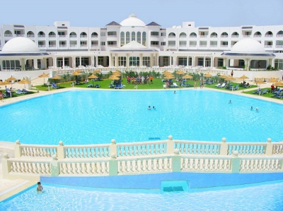 Hammamet , TUNISIA Distanța fată de plajă pe plajă aeroport Tunis 64 km centrul orașului Hammamet 5 km magazine 1 km Camere standard cu 2 paturi pat suplimentar: 1(a 3-a pers) pat suplimentar: 2(2 copii) baie proprie (cadă sau duș, uscător de păr, WC) aer condiționat telefon, TV satelit seif Facilităţi recepție restaurant principal restaurant a la carte baruri centru de balneoterapie magazin de suveniruri piscină (șezlonguri și umbrele gratuite) piscină acoperită Plajă cu nisip șezlonguri, umbrele gratuite bar pe plajă sporturi nautice contra cost Activități sportive și distractive gratuite programe de animație programe de seară, ocazional fitness, saună, jacuzzi, masaj baie turcească Activități sportive și distractive contra cost sporturi nautice echitație în apropiere teren de golf la 6 km Regim de masă DEMIPENSIUNE: mic dejun și cină tip bufet sau PENSIUNE COMPLETĂ: mic dejun, prânz și cină tip bufet. | ||||||||||||||||||||||||||